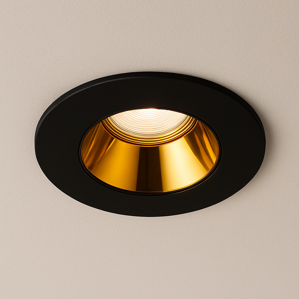 4CCT Anti‑Glare Downlight – 5/7W, IP65, Fire‑Rated, Black & Brass