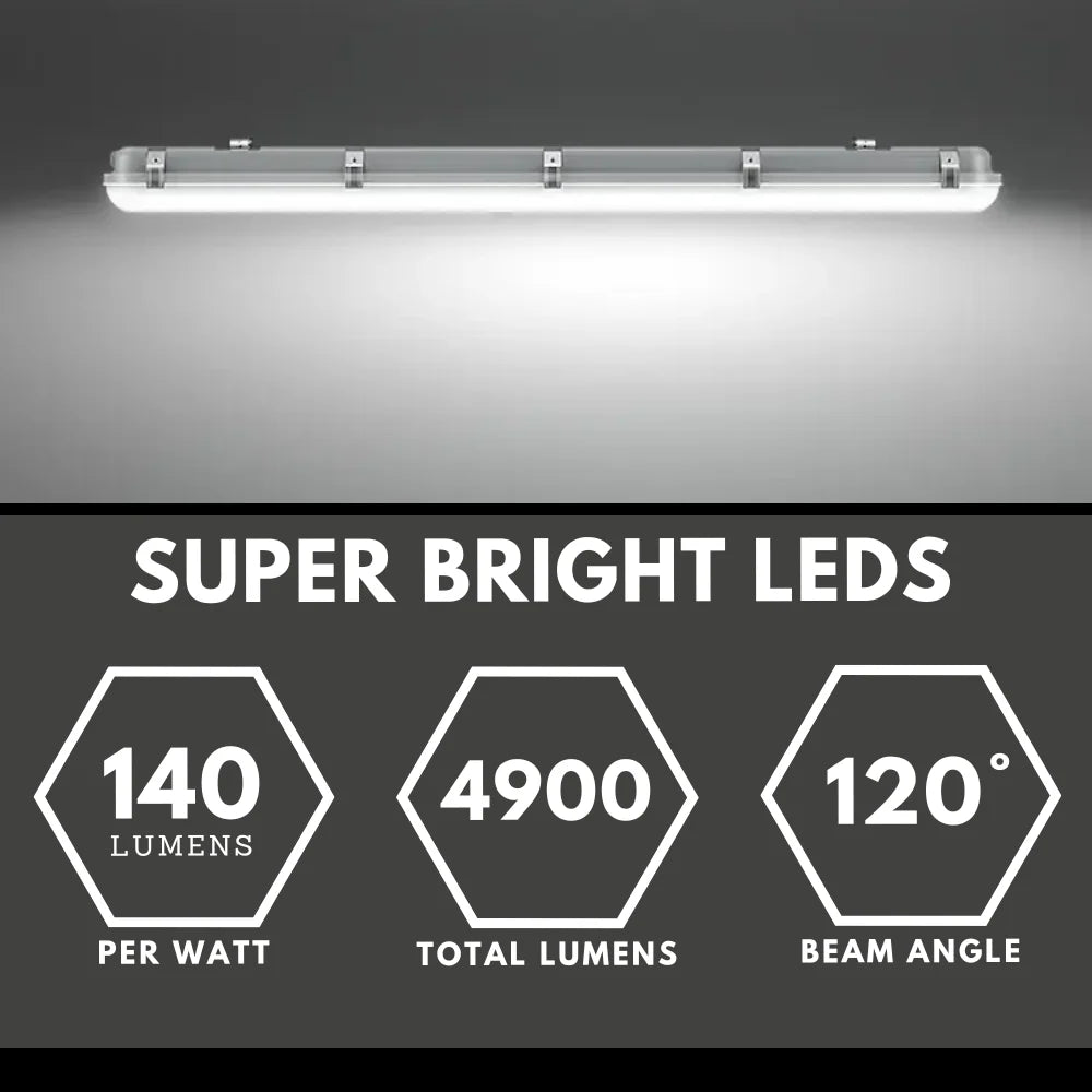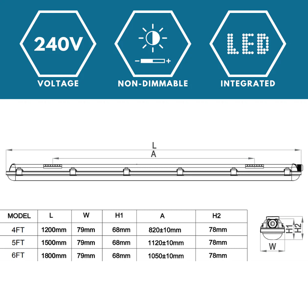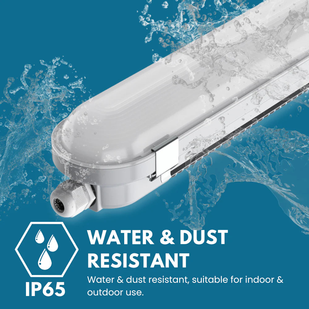 4ft Non-Corrosive Twin LED Batten – High Lumen 4900lm, CCT Tri-Colour, Multi-Wattage, IP65, Standard