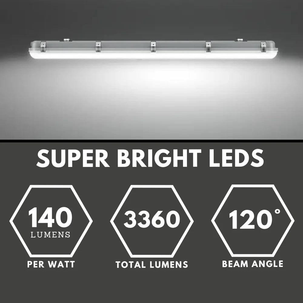 5ft Non-Corrosive Single LED Batten – 3360lm, CCT Tri-Colour, Multi-Wattage, IP65, Standard