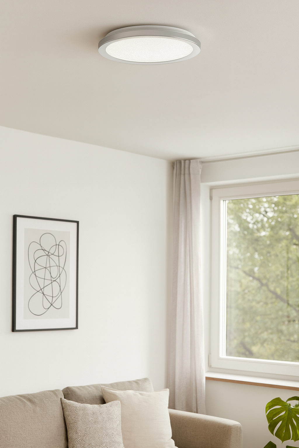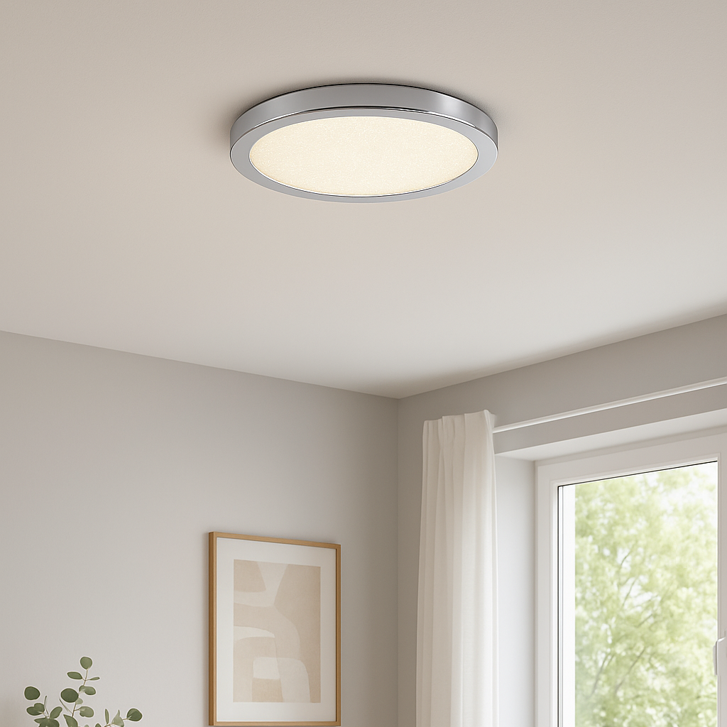 The CESAR Round Light is a modern and versatile ceiling or wall light designed with a flat round profile, chrome trim, and... Read more