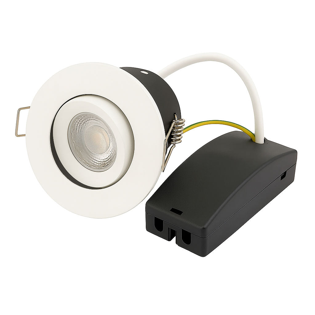 Fire-Rated 30/60/90 min Open Back Tilt Adjustable Downlight – IP20, GU10, Matt White