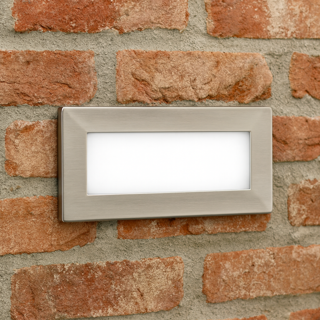 LED Slim Brick Step Light – Integrated LED, Frosted Diffuser, IP65, Brushed Nickel