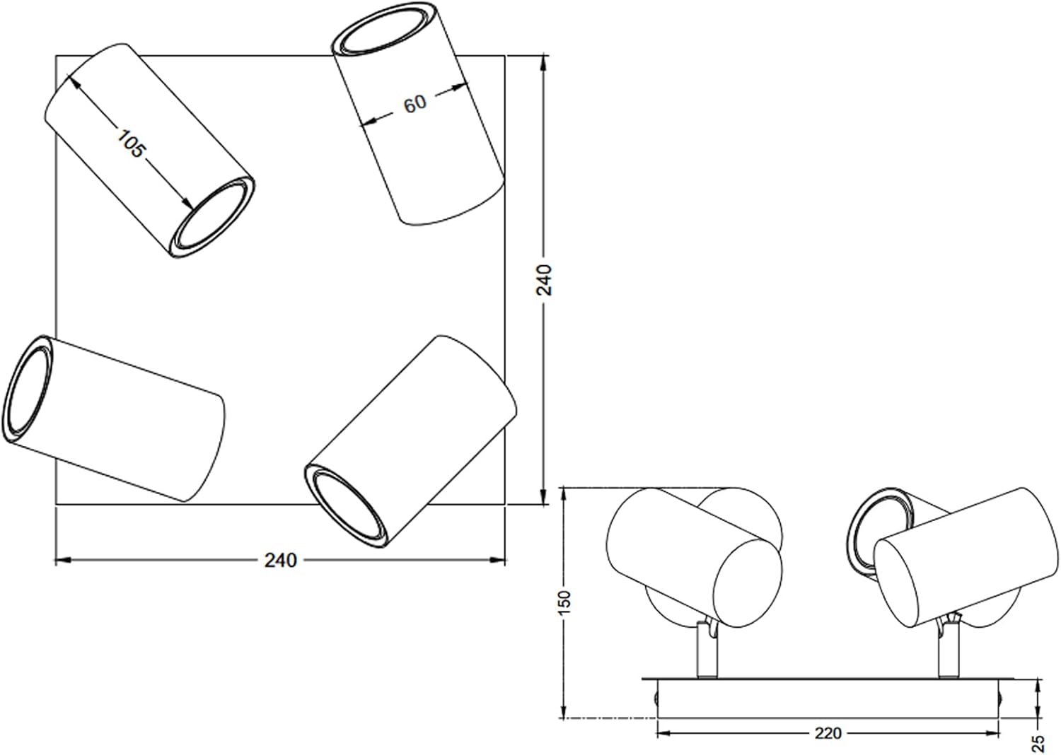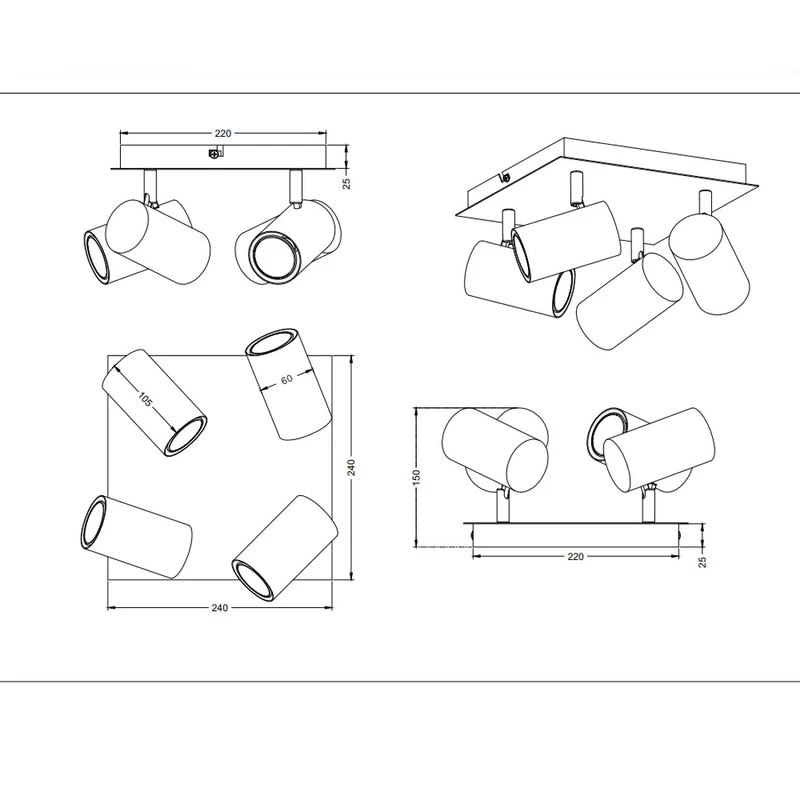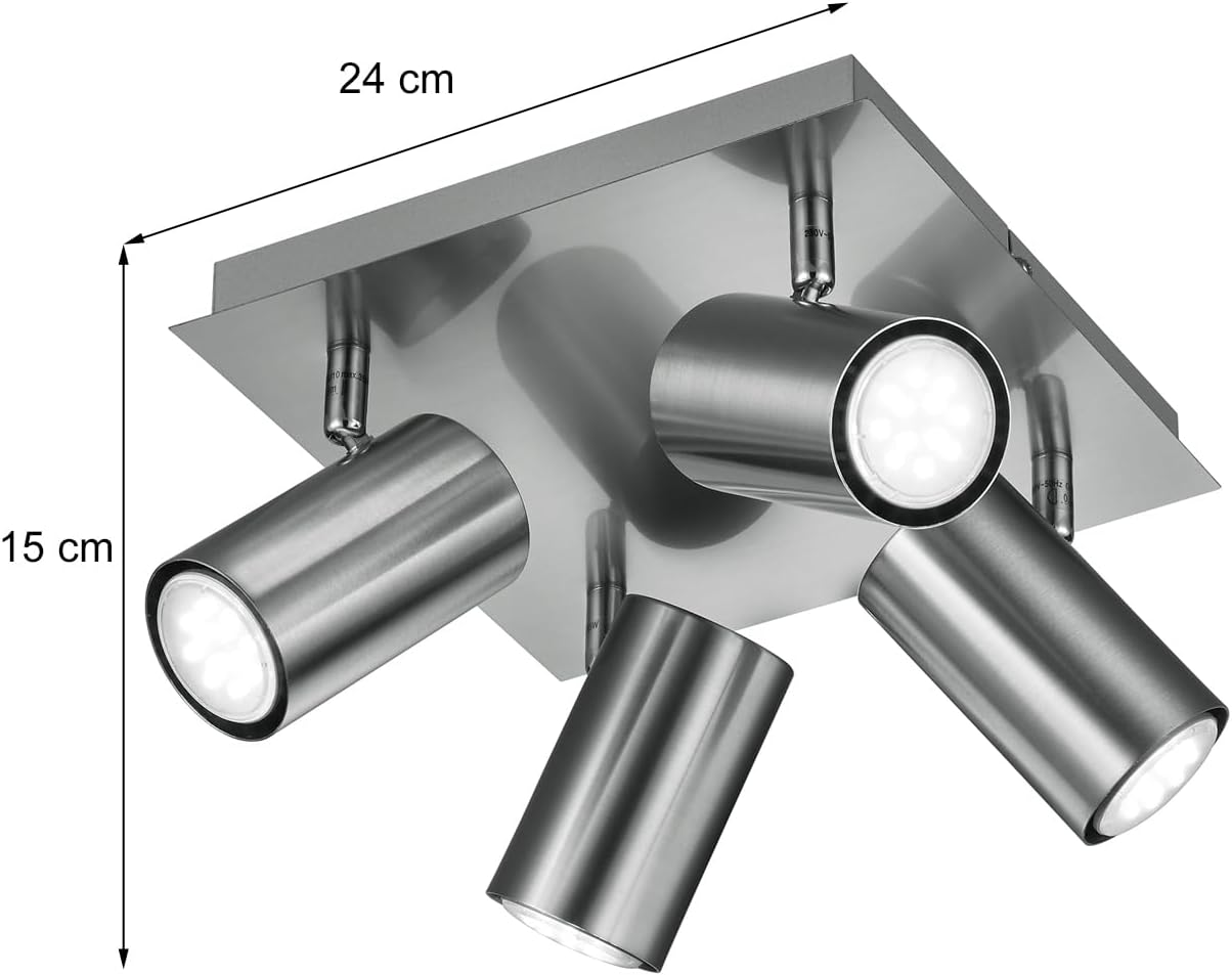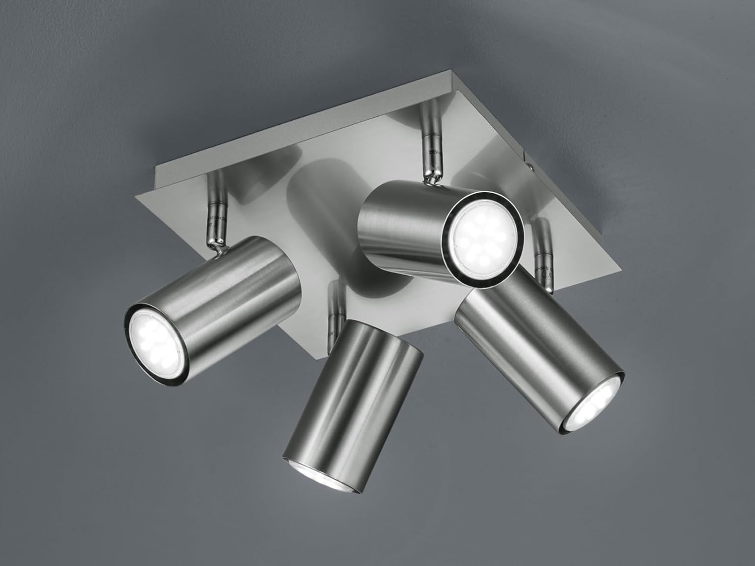 Quad Square Adjustable Spotlight – GU10 Wall or Ceiling Light, Matt Nickel, IP20
