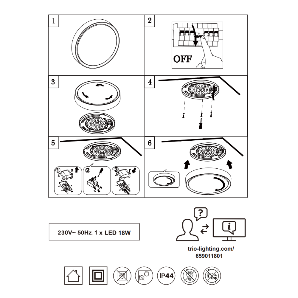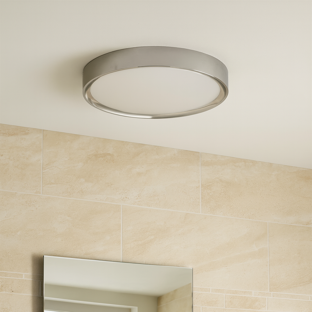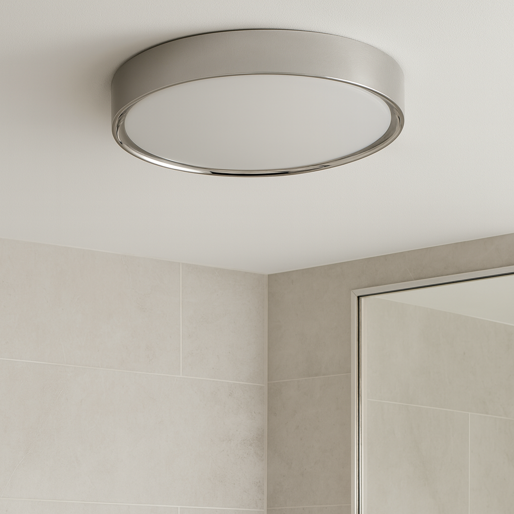 Round Ceiling Light – 18W LED, 1850lm, 3000K Warm White, IP44, Chrome