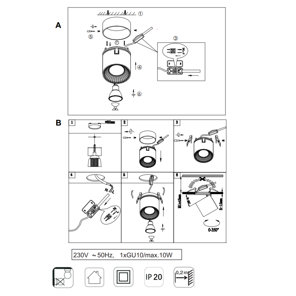 Single Adjustable Spotlight – GU10 Ceiling Light, Matt White, IP20