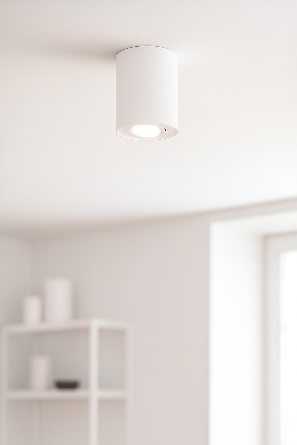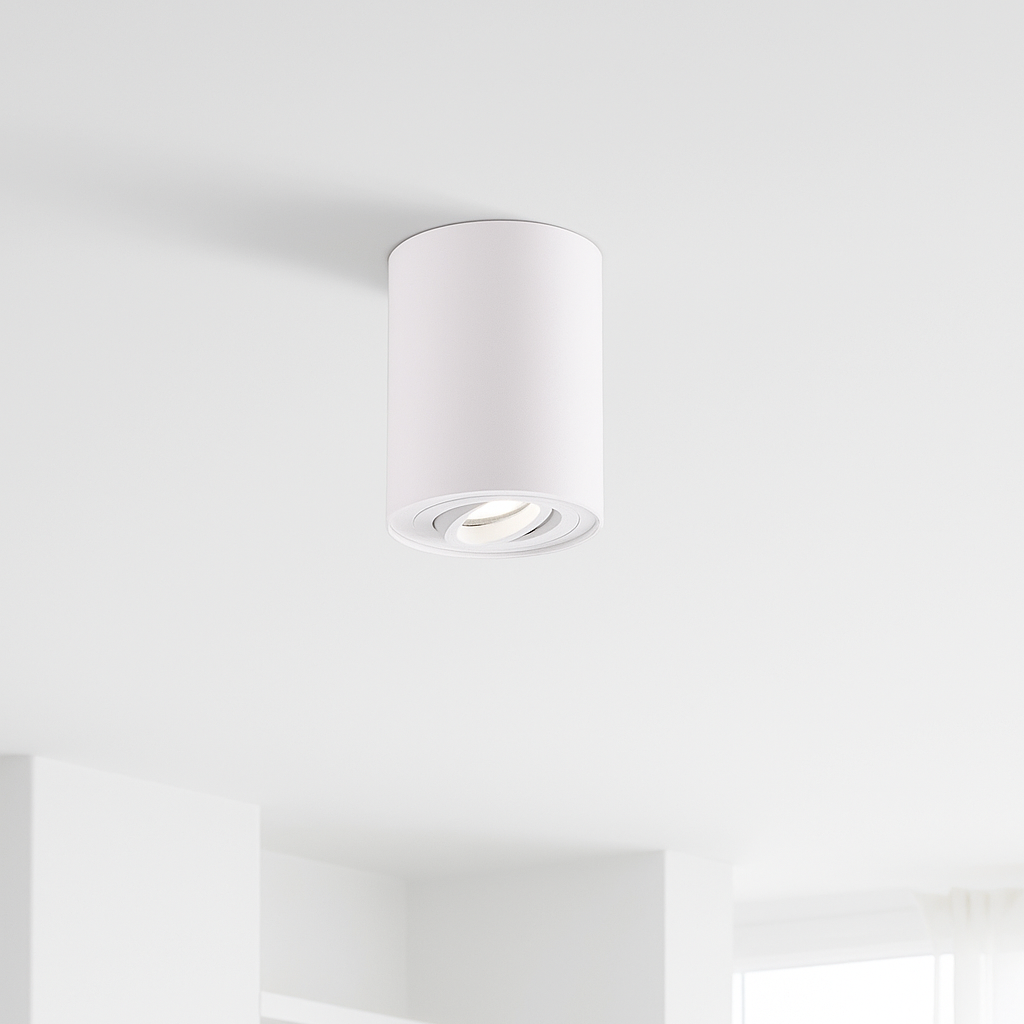 Single Adjustable Tubular Cylinder Spot Light – GU10, IP20, Ceiling Mounted, Matt White