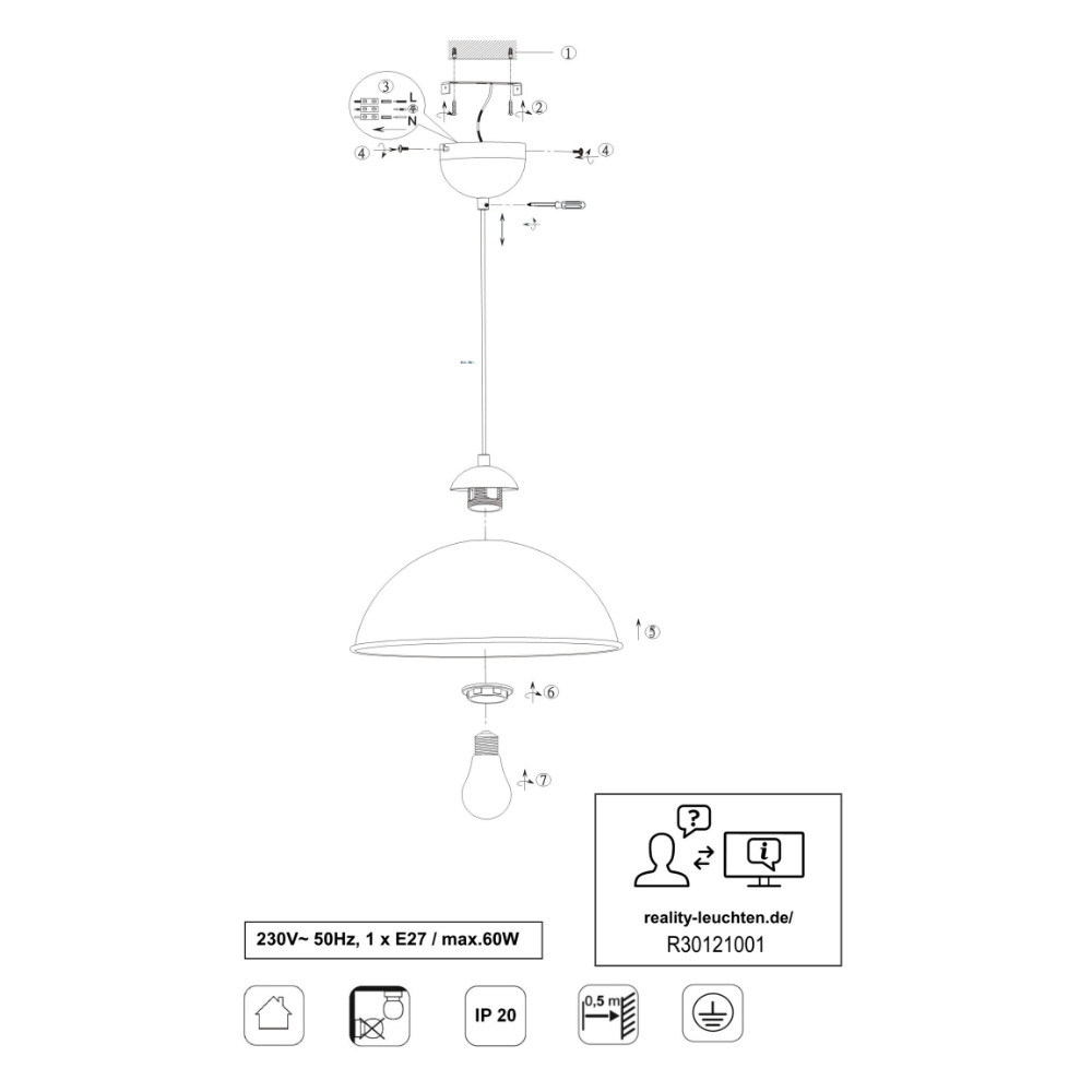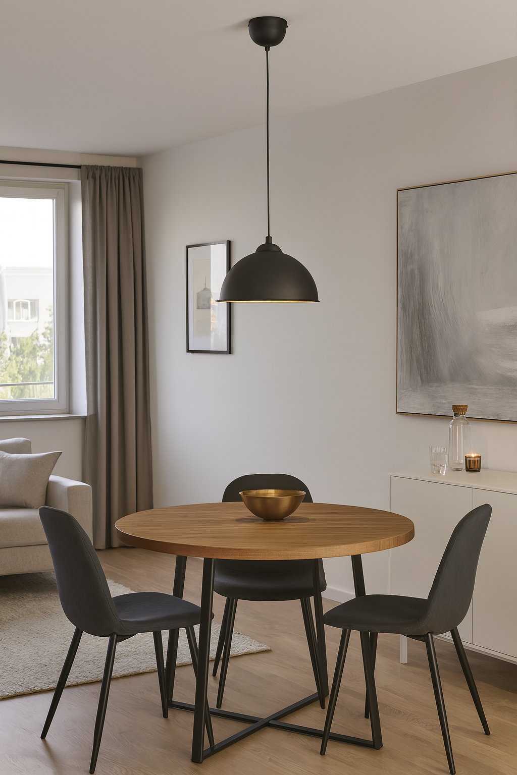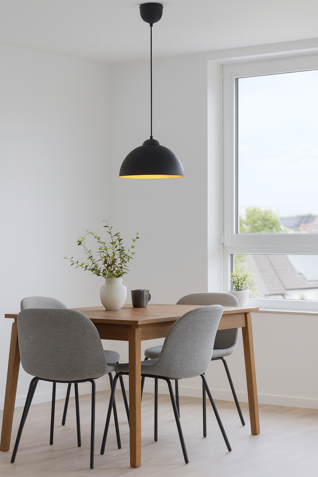 Single Ceiling Round Pendant Light – Modern, E27, Black & Gold