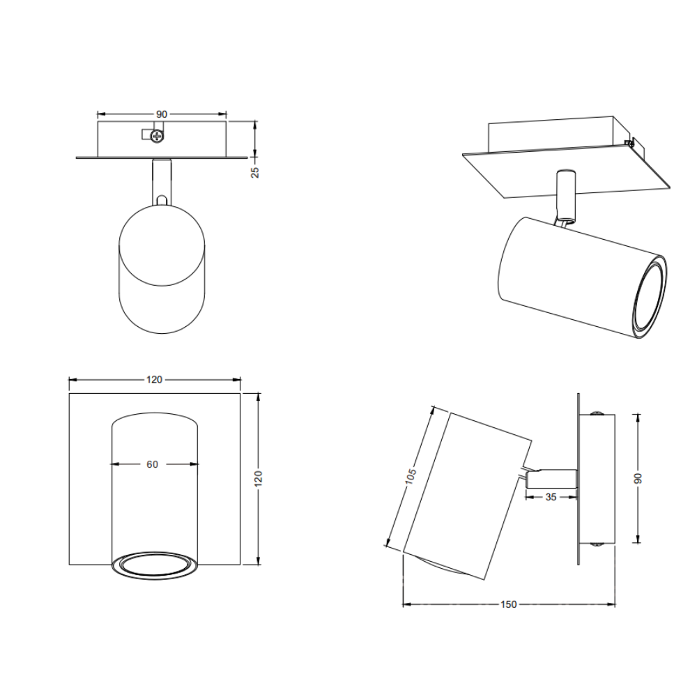 Single Square Adjustable Spotlight – GU10 Wall or Ceiling Light, Matt Nickel, IP20