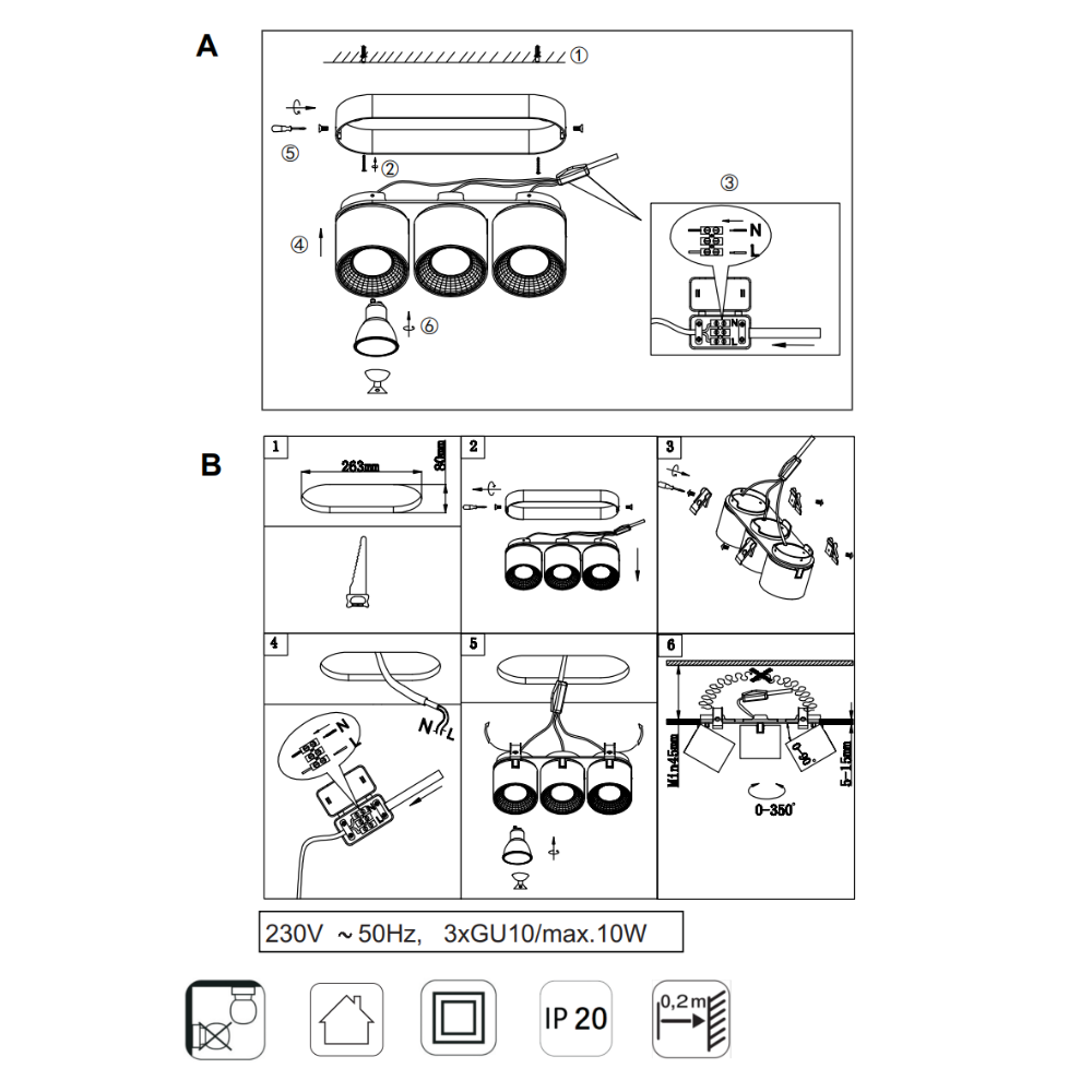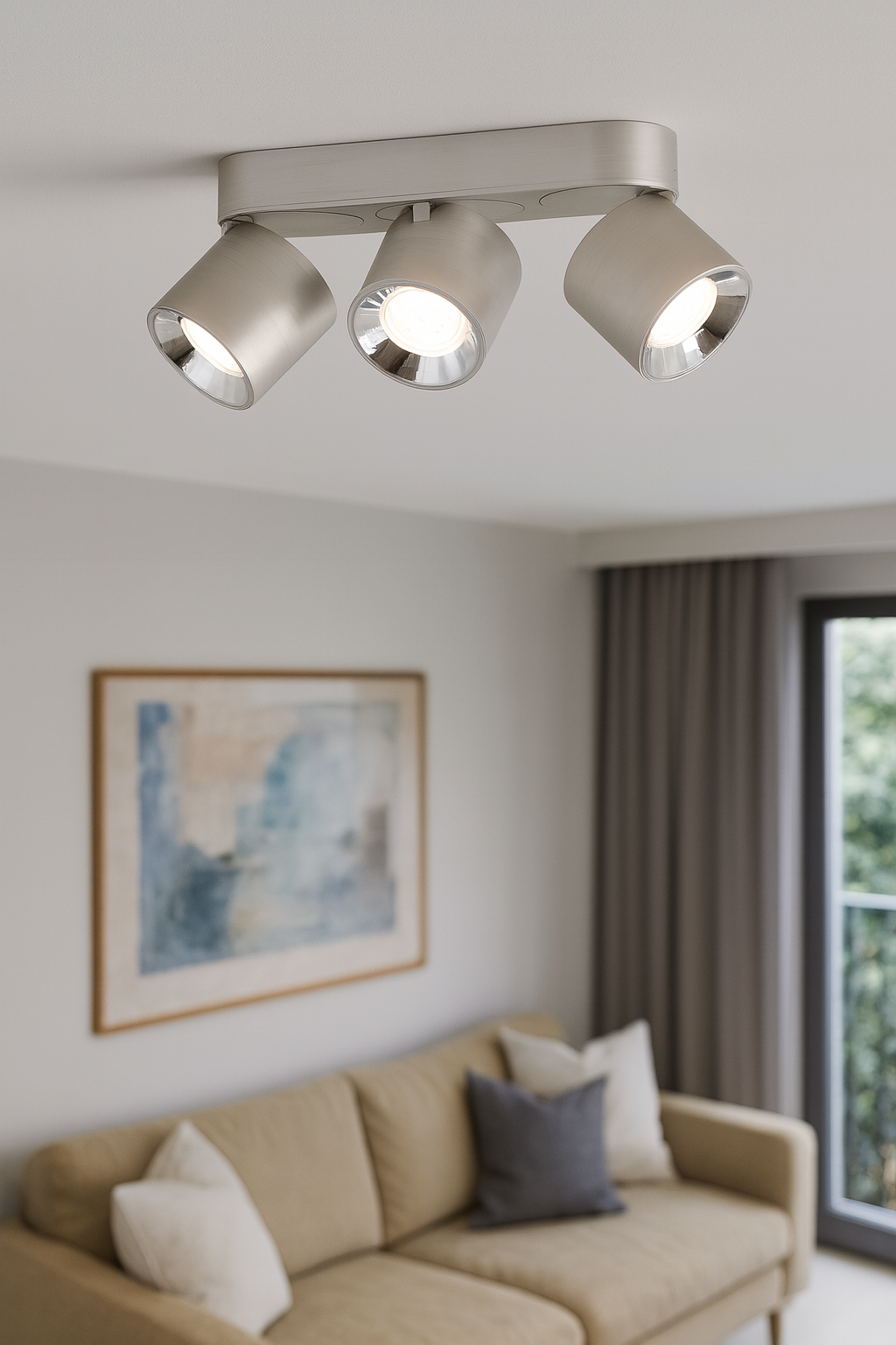 Triple Adjustable Modern Spotlight – GU10 Ceiling Light, Matt Nickel, IP20