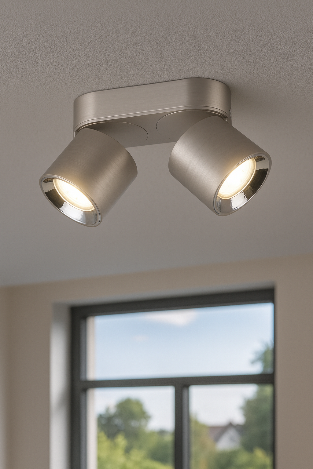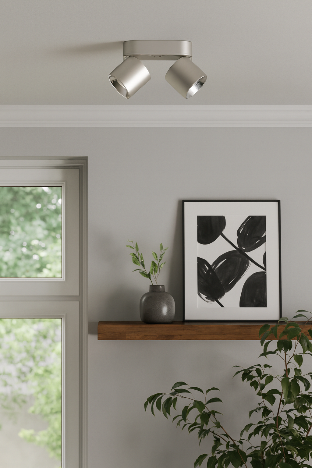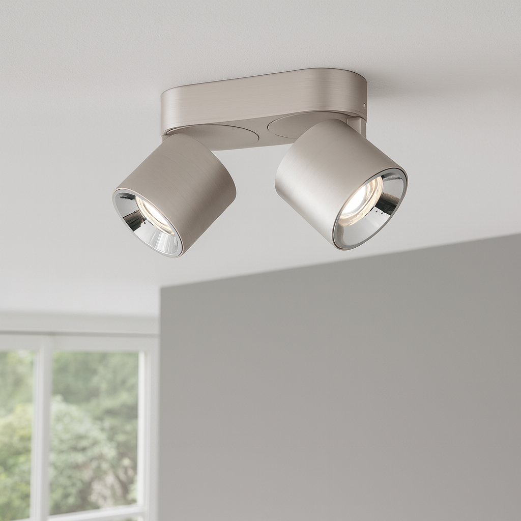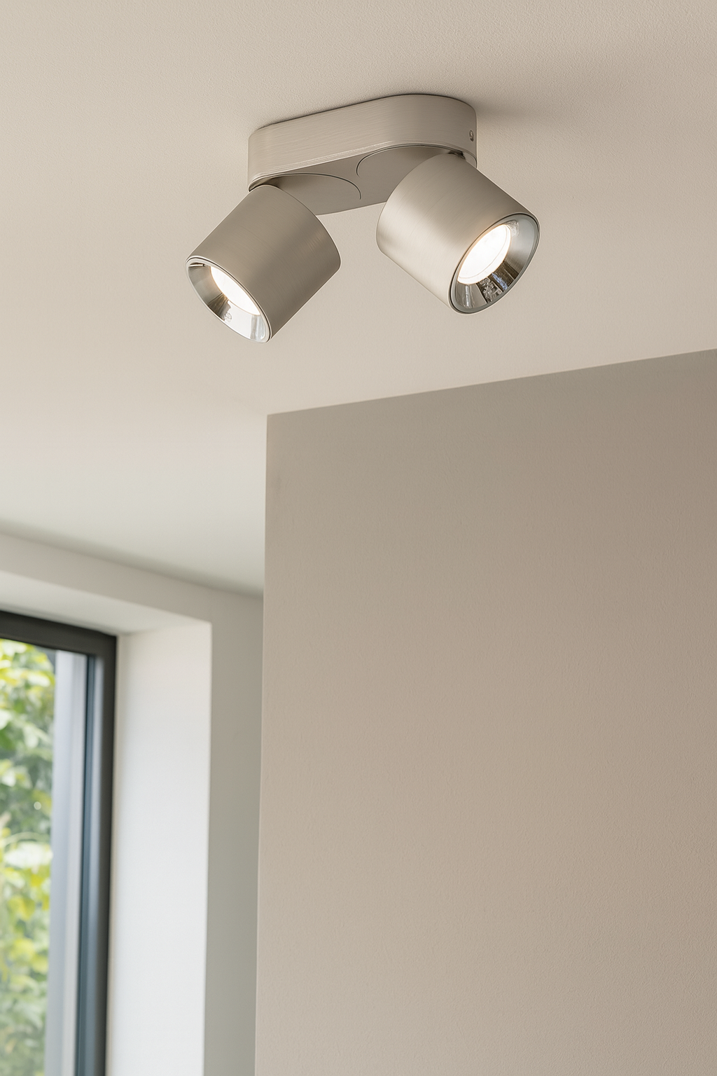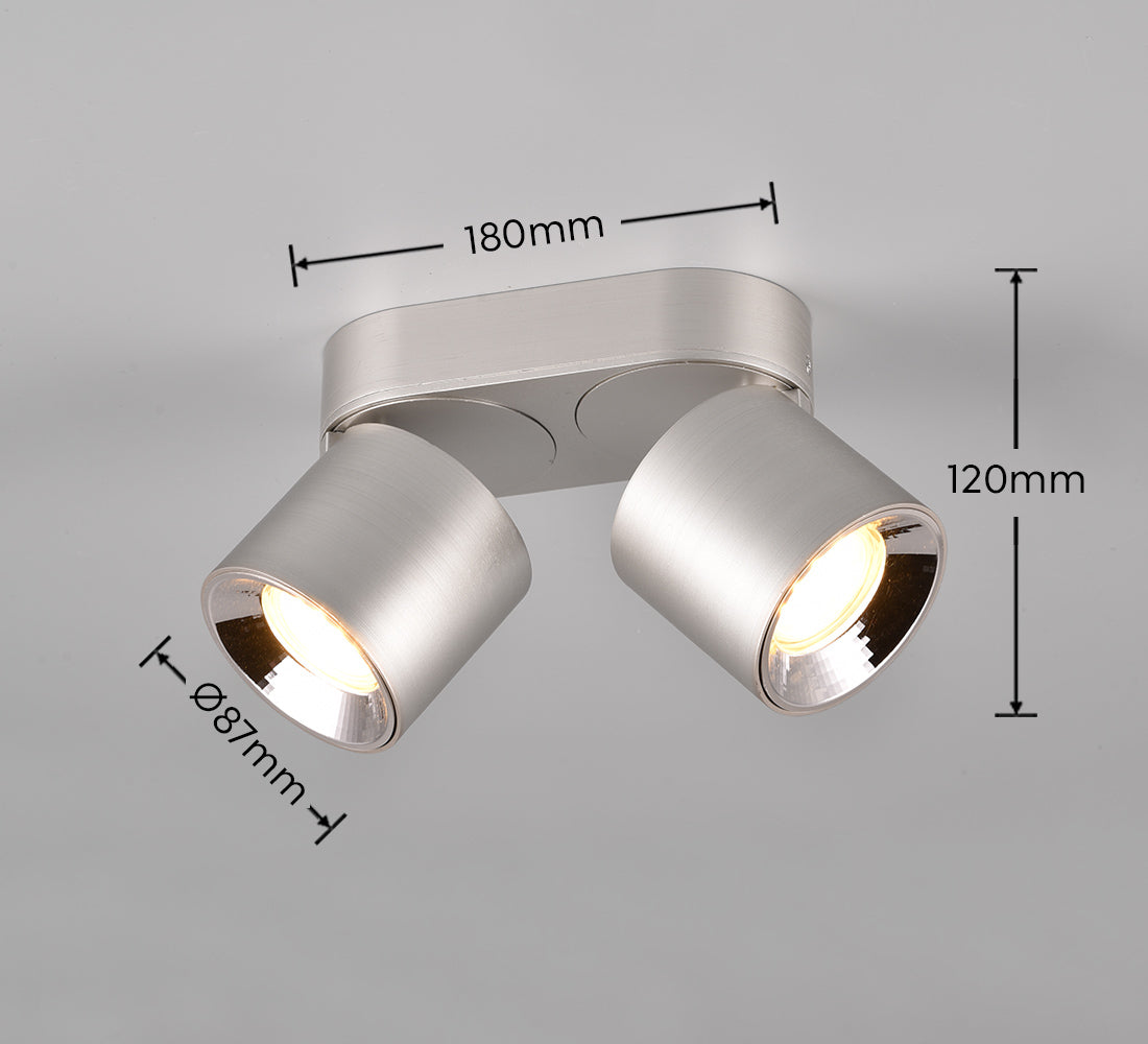 Twin Adjustable Modern Spotlight – GU10 Ceiling Light, Matt Nickel, IP20